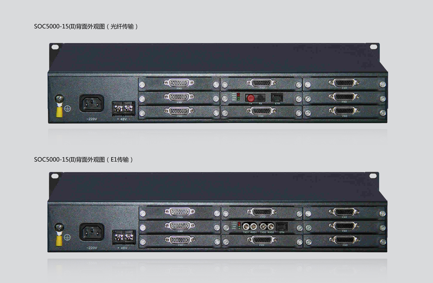 SOC5000-15Ⅱ綜合復(fù)用設(shè)備是通過E1或光纖通道傳輸語音(FXO、FXS、2/4線、E/M、磁石等)、以太網(wǎng)數(shù)據(jù)(100M/1000M)、同/異步數(shù)據(jù)(RS232/422/485)、E1等綜合業(yè)務(wù)。適用于有光纜鋪設(shè)而無電纜鋪設(shè),或語音需要保密(如部隊)的場合SOC5000-15Ⅱ綜合復(fù)用設(shè)備將PCM和傳輸設(shè)備融于一體,同時配合其他設(shè)備可組建各種不同類型網(wǎng)絡(luò)拓撲。